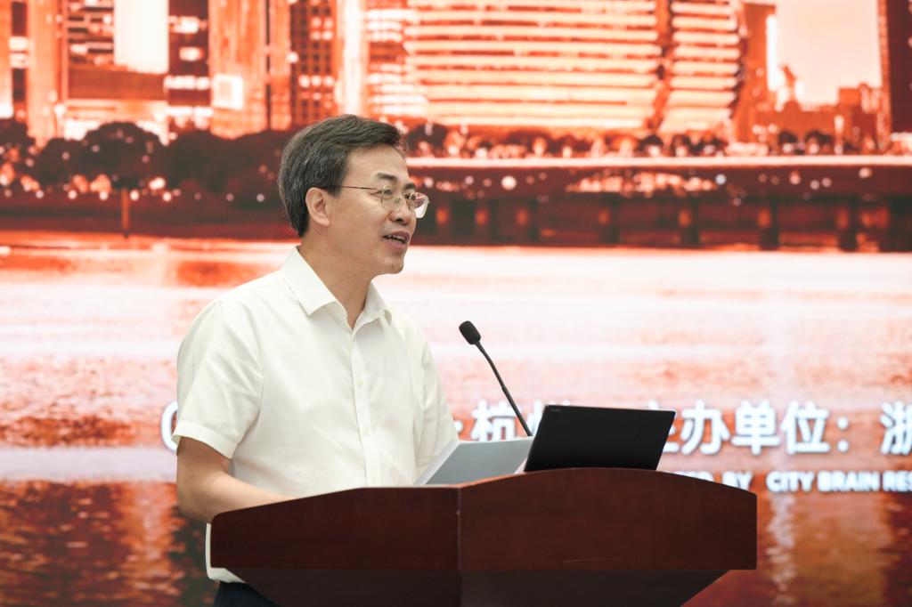 他以《城市会思考 生活更美好—杭州城市大脑赋能高温韧性城市建设的探索实践》为题作主旨报告,阐述了城市大脑从“治堵”“治疫”到“治城”的发展历程,强调了“一整、两通、三同、直达”理念的传承发展。他表示,希望在高温韧性领域打造数据赋能的“杭州样本”。