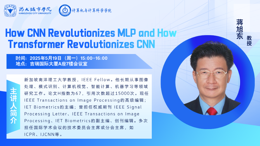 讲座How CNN Revolutionizes MLP and How Transformer Revolutionizes CNN时间:2025-05-19 15:00