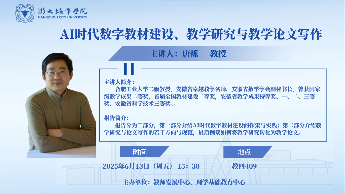 讲座AI时代数字教材建设、教学研究与教学论文写作时间:2025-06-13 15:30