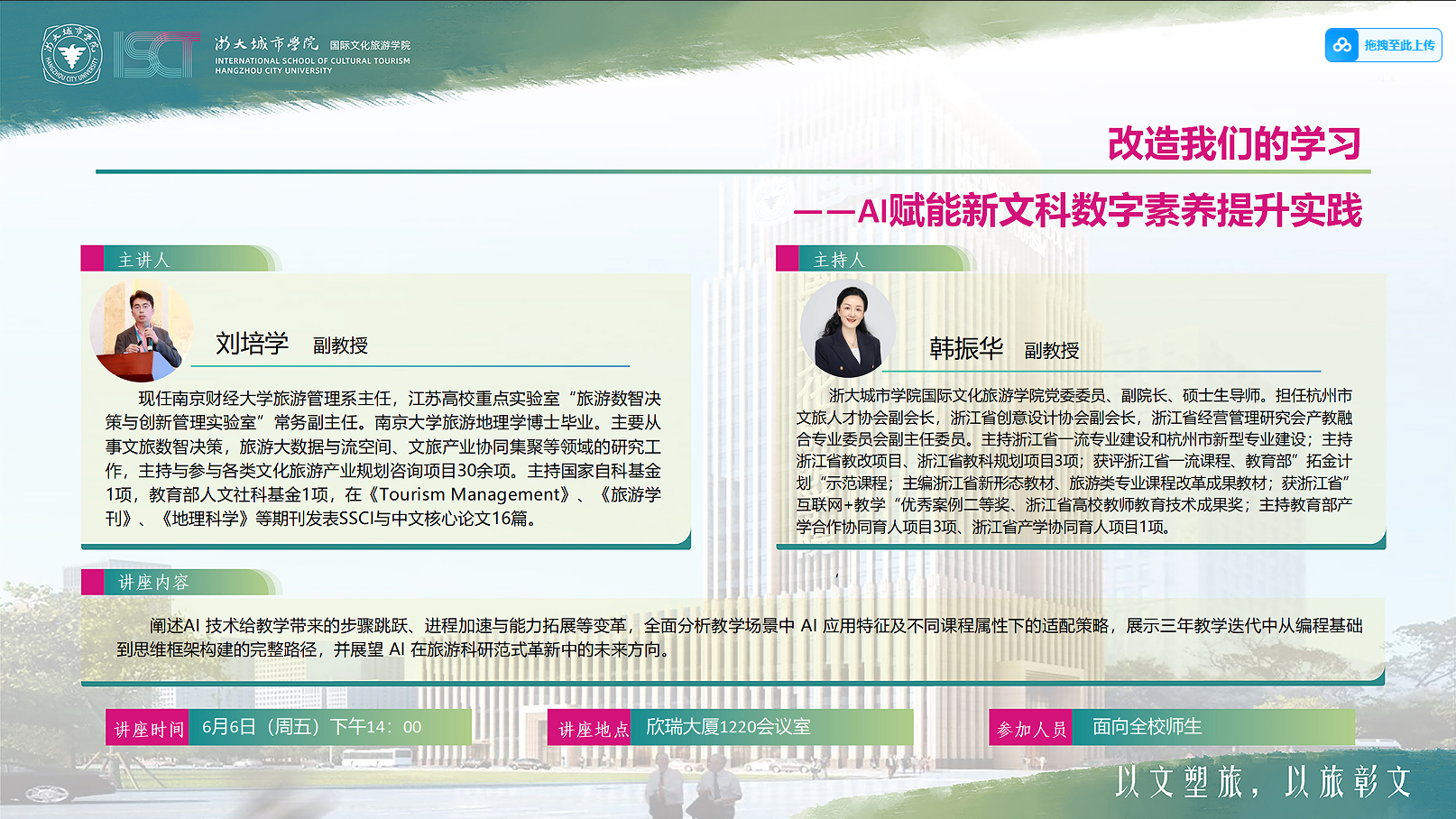 讲座改造我们的学习——AI赋能新文科数字素养提升实践时间:2025-06-06 14:00