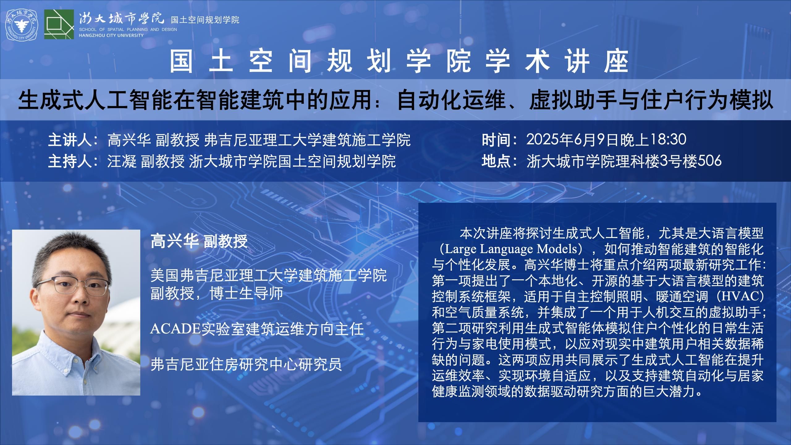 讲座生成式人工智能在智能建筑中的应用:自动化运维、虚拟助手与住户行为模拟时间:2025-06-09 18:30
